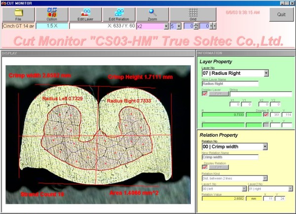 Analysis Software - Crimp height, Crimp Width, Crimp Compression , Ratio